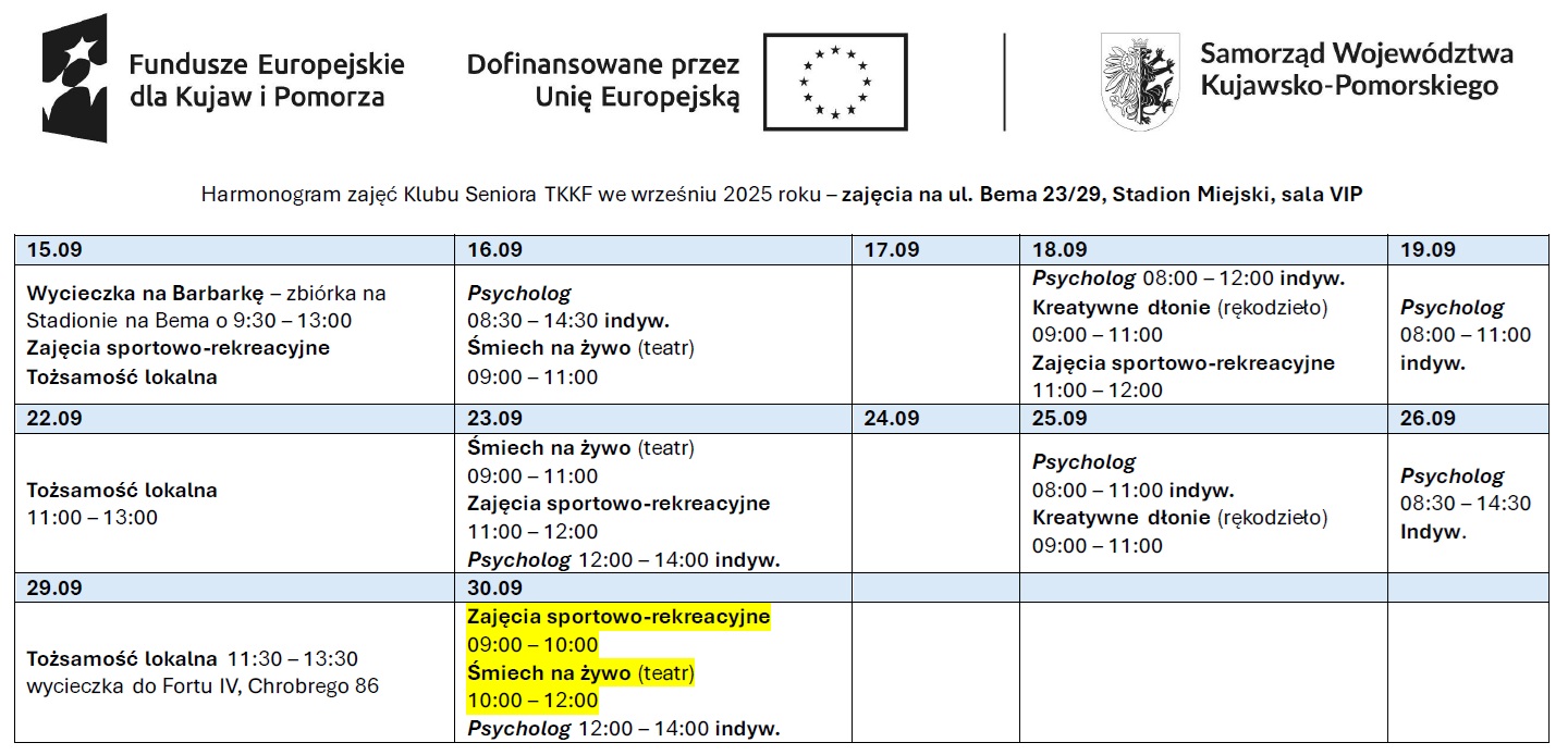 Zmiana w planie 30.09 (inna kolejność)
